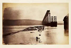 - Tay Rail Bridge. And then there's the infamous first Tay Rail Bridge, remnants of which can be seen next to the current rail bridge. It opened in 1878 but collapsed in high winds on 28 Dec 1879, taking a train with it, and all 75 aboard were killed.