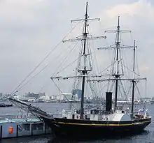 - π De Amsterdam, part of the π Nederlands Scheepvaartmuseum, the Amsterdam is a replica of a 1748 VOC ship, which stranded at the coast of Hastings.