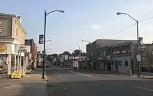 SR-165 comes into town from SR-14 in the north as N Market St. It then continues east on E Taggert St to SR-51 3 mi (4.8 km) east of town, over the state line, in Pennsylvania.