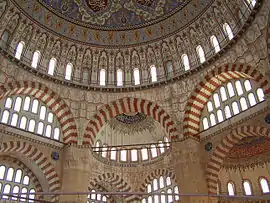 - 🌍 Selimiye Mosque (Selimiye Camii), Mimar Sinan Cd. Daily 05:30-23:30. Magnificent mosque that dominates the city skyline, approach from northwest to appreciate the full effect and miss the shops. It's the masterpiece of Mimar Sinan, built 1569-75, and listed as a UNESCO World Heritage Site. The eight pillars supporting the dome are unobtrusive, so the dome hangs over a vast interior space, while 999 windows admit a flood of light. Four delicate fluted minarets soar to 70.89 m, surpassed only by Qutb Minar in Delhi. The interior is decorated with calligraphy and geometrical designs in pink and blue. The inverted tulip decoration, an emblem of Edirne, is said to acknowledge the previous landowner who was reluctant to give up his tulip garden for the mosque to be built. Free.