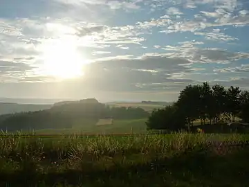 The Eifel is a low mountain range bordered by the Rhine to the east and the Mosel to the south. The scenery includes some interesting formations caused by volcanic activity such as circular hills formed from vents and circular lakes in old craters.