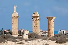 It's disputed which name was used for the port city back in the day, and therefore it's sometimes referred to as the archaeological site at Marina el-Alamein. Greek geographer Strapo, working before and after Christ, described places along the coast and both the descriptions of Leukaspis and Antiphrai would fit the current site.