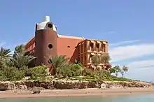 - 🌍 Sheraton Miramar Resort El Gouna, ☏ +20 65 354 5606, fax: +20 65 354 5608. Built in 1997 and renovated in 2008, it's set in a lagoon landscape. There's a main, a Middle-eastern and Italian restaurant, a pool restaurant and several bars. There are two main swimming pools, shops, beauty salon, gyms, wellness center, sports facilities and a children's club with a couple of pools. Rooms have a/c, satellite tv, minibar, safe, balcony, bathroom with shower. Free Wi-Fi in the lobby, payable in the rooms. TGI Diving Center is based here.
