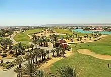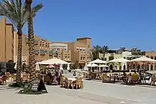 Resorts in Egypt, both on the Mediterranean and Red Sea, are usually a bunch of hotels on a previously uninhabited piece of coastline. El Gouna was built with a different mindset; a real town with inhabitants and "free standing" restaurants, bars, night clubs and shops as well as a marina for yachts. The same concept was used for Marina el-Alamein on the Mediterranean, Taba Heights on the Sinai east coast and Port Ghalib.