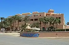 - 🌍 Labranda Club Paradisio El Gouna, ☏ +20653547934. Right at the beach, it's an all-inclusive hotel with 239 double rooms opened in 1989. There are two restaurants; the main restaurant Marco Polo and the Morgan's Beach Bistro as well as three bars. When it comes to swimming and bathing; there are two pools, one children's pool, a sauna and a steam bath. Rooms have balcony, a/c, satellite tv, bathroom with shower, minibar and safe. Wi-Fi is free in public areas, payable in the rooms. Diving operator Coraya Divers and kitesurfing operator Osmosis Kiteboarding are based here.