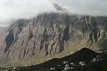 Across the island goes the Cumbre, a forested volcanic mountain range. In the northeast is another plateau, in the northwest the El Golfo valley and in the southwest the slopes of El Julán. The landscape shows great contrasts: on one hand much of the island is high above the sea and steep cliffs make up most of the coastline, though on the other hand the highland is quite even and composed of fertile farmland.