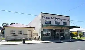 - 🌍 Emmaville Mining Museum, 86 Moore Street (opposite Tattersalls Hotel), ☏ +61 2 6734 7025. F-W 10AM-4PM - closed Th and public holidays. Showcases over 4,000 mineral and gemstone specimens, Foleys General Store Museum, a replica blacksmith's shop, an old wood-fired bakery, old mining equipment, the interior of an hessian-lined miner's hut, photographic collection, bottle collection. A gold coin donation ($1-$2 per person).
