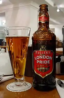 Ale — This is not simply another word for "bitter" or "beer". It is used to describe any beer other than lager (i.e. it is a beer brewed at cellar temperatures using floating yeast, i.e. bitters, milds and stouts). However, these days "ale" is often used a little self-consciously, usually either as a "matey" word for any type of beer ("Anyone fancy a few ales?") or in a consciously "traditional" way ("Try a pint of good old English ale"). To ask for "A pint of ale, please." would sound like a line from a period film. However "real ale" is an accepted term, so to ask "What real ales do you have on?" would be quite normal.