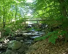 Englewood is a city in Bergen County, New Jersey. It borders on Fort Lee and Englewood Cliffs to its east, Tenafly to its north, Teaneck to its west, and Leonia to its south. Some sections of the city are quite built-up with office buildings and businesses, but it is also home to the Flat Rock Brook nature preserve (pictured below).