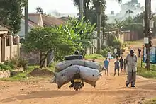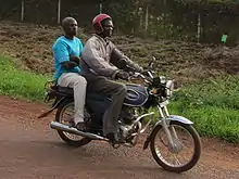 The fastest and most dangerous method is the boda-boda: motorcycles that you see all over town. You won't be in Entebbe long before being propositioned by a boda rider. If you're not interested, a simple 'no' will get them to leave you alone. You can get most anywhere on the back of one for USh 2000–5000, but make sure to agree on the fare before the ride begins. Men usually ride facing forward while women are expected to ride side saddle; very risky. Females can get away with riding facing the front, but may be accused of riding "like a man," though the locals are fairly understanding of female tourists doing this.