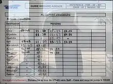 - 🌍 Gare routière, Avenue 2 Mars. Small and unappealing station which local buses depart from. Local buses from Marrakesh bus station cost 55-60 dirham but they might try to ask tourists for more, these buses are sometimes less comfortable and slower, but they depart more frequently than the CTM buses. Many ticket sellers and semi-touts are running around the buses and station, trying to organise your trip and luggage. Note, official prices are posted inside the terminal, so do not get told it is more expensive than that. Also be curious about any luggage fee—not common, especially for luggage on-board.