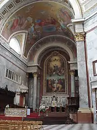 - 🌍 St. Peter and Paul Church of Inner City Parish (Esztergomi Szent Péter és Pál plébánia, Belvárosi plébánia), Esztergom, IV. Béla király utca 3./ Deák Ferenc utca (south of City Hall), ☏ +36 33 413791, +36 20 7752841, fax: +36 33 413791, sztpeterespal@egomnet.hu. Parish office: M-F 15:00-18:00. The St. Peter's parish was the predecessor of today's inner city parish, and was first mentioned in 1294. the St. Peter and Paul Church was built in 1699 on its walls. After extended in 1762, Archbishop Ferenc Barkóczy consecrated the huge, ancient, baroque church (990 m²). The main altarpiece depicting St. Peter and St. Paul, donate Kolos Vaszary Archbishop in 1896. The Baroque high altar was replaced in 1900 with a marble high altar. The fence of the wall of the church placed a St. John Nepomuk statue (18th century) monument. Similarly, a monument the parish house (1784). Throughout the year there is pilgrim accommodation here, by appointment.