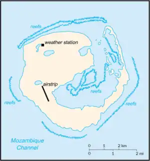 A French possession since 1897, this tropical, flat island is a heavily wooded wildlife sanctuary. It is the site of a small military garrison that staffs a weather station.