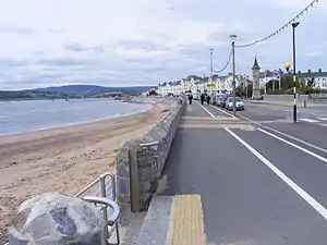 - Exmouth is a popular tourist destination due to its long, sandy beach. However, swimming is forbidden on a short stretch of the beach due to fast tidal currents.