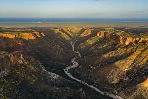 - 🌍 Cape Range National Park is entered 20 km south of the lighthouse, see separate page for park fees, sights and regulations. The road continues south through the park (tarmacked and suitable for standard cars) for another 30 km to end at Yardie Creek.