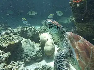 UNESCO World Heritage Site. Around Exmouth and the Northwest Cape it comes to within a few hundred meters of the coast, creating tranquil lagoons with beautiful corals. Several dive operators and resorts offer trips, for instance to Lighthouse Bay and to Point Murat Navy Pier. Longer trips visit the Muiron Islands 13 km off Point Murat, a breeding ground for sea turtles. - Dive shops in town are Exmouth Diving and Dive Ningaloo - this latter is the only operator taking trips to Navy Pier. They also offer whale-watching and other boat trips, but not dive training so you need to be already certified.