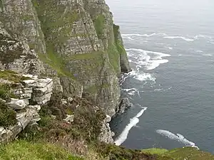 - 🌍 Horn Head (Corrán Binne) north of Dunfanaghy ends in 180 m high cliffs. One lookout tower is Napoleonic era, the other is from World War II. MacSwyne's Gun on the west side is a blow hole.