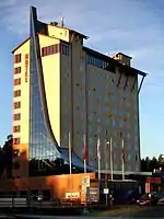 - 🌍 Scandic Hotel Lugnet, Svärdsjögatan 51, ☏ +46 23 669-22-00, falun@scandic-hotels.com. Near the Lugnet sports area about 10 minutes walk from the city centre. The building itself has an interesting design with windows made to resemble a ski jump ramp. Singles and doubles from 750 kr.