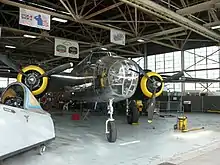The North American B-25 Mitchell, "Miss Hap," which was used to transport a General of the Army Air Corps during World War II, on display in the American Airpower Museum