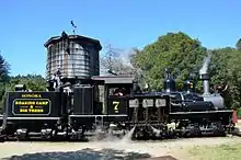 Locomotive #7 Sonora steamed up and about to depart Felton station on the Roaring Camp Railroad