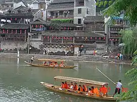 Fenghuang (凤凰; Fènghuáng) is a well-preserved ancient town in western Hunan Province, about a half hour south of Jishou. It is the birthplace of author Shen Congwen 沈从文 (1902-1988) and residence of artist Huang Yongyu 黄永玉 (1924 -).