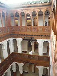 - 🌍 Al Quaraouiyine mosque and library (Al-Karaouine). A large religious complex that has evolved since the 9th century into a famous center of learning. Non-Muslims cannot enter, but the courtyard and the prayer hall are partly visible from the mosque's doorways. (Doors are more likely to be open on Fridays.) Its historic library is housed in an annex on the south side of the mosque, off Place Seffarine.
