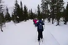 For overnight (or multiple-day) hikes on ski you usually want skis that don't let you down even if you leave the tracks. There are ready made tracks for "classic" skiing extending far into the wilderness, but they are not necessarily maintained very soon after snowfall – and you might want to choose routes where no tracks have been made. There are lean-to shelters (Finnish: laavu) and wilderness huts (autiotupa and varaustupa), so overnighting in a tent is seldom necessary, but sleeping bags and other adequate equipment may be needed.