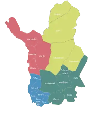 Lapland is divided into twenty municipalities, four of which (Tornio, Kemi, Rovaniemi, and Kemijärvi) are denoted as a city. Some of the other "cities" have just a few hundred inhabitants, if that, but here we go.