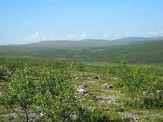 Lapland is locally known for its fells (tunturi), but these are not any soaring mountains of the alpine kind, but gentle, rounded ones high enough to reach above the treeline (which is much below 1000 m at these latitudes). There are also vast forests and mires in hilly or flat terrain. In the northernmost regions (Utsjoki and Enontekiö) you will find also treeless areas, but real tundra is absent in Finland. The highest mountains are located in the "arm of Finland" in Enontekiö, but because of the location of the road right next to the fells, best views are actually towards Sweden. Still there are magnificent environments available for hikers!