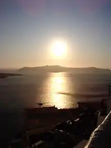 - Panorama Hotel, ☏ +30 2286022481, fax: +30 2286023179. The hotel on Caldera faces the sea and the volcanoes. 12 studios, one Greek villa and one honeymoon suite.