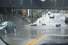 Intense rain with insufficient areas to absorb the water can result in flash floods. In the US the National Flood Insurance Program defines it as “rapid flooding of low-lying areas in less than six hours, which is caused by intense rainfall”.