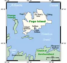 Fogo Island and Change Islands lie off the northeast coast of the island of Newfoundland in Atlantic Canada.