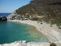 Folegandros is a barren island with a rocky coastline and almost sheer cliffs. Main settlements are the port of Karavostasi, the capital of the island, the "Chora", built on the edge of a cliff overlooking the northern coast and the windswept village of βAno Meriaβ. Only the beaches of Agali and Karavostasi bays can be reached by car. π Katergo is a secluded beach and can only be reached by boat or an hour long hiking from Livadi campsite.