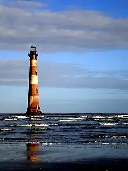 - 🌍 Morris Island Lighthouse, at the east end of Folly Island (take Ashley Avenue east from Folly Beach all the way to the end of the road, park on the side of the road, and walk along the trail the rest of the way). Situated off the coast, Morris Light is a picturesque tower that was once a functioning lighthouse, but was abandoned as erosion caused it to be isolated from the shoreline. Today it's preserved as a local landmark, viewable from a quiet and scenic beach.