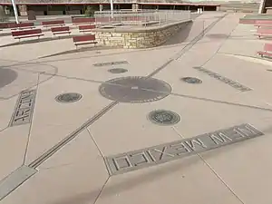 - Interpretive signs - There is a bronze plaque in front of the steps along the New Mexico part of the granite slab. It reads: