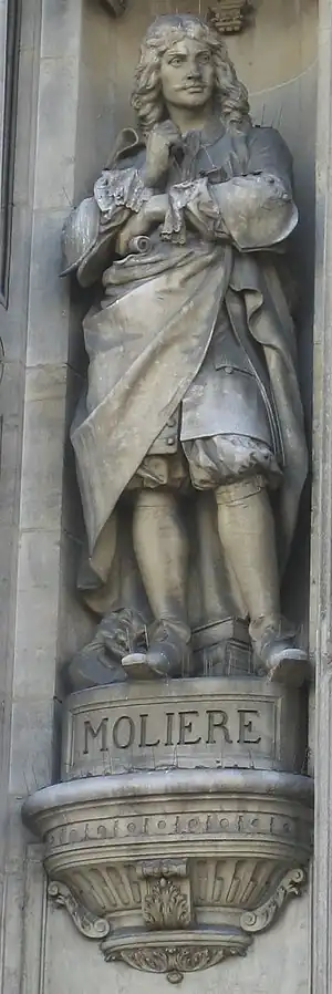 French is often called the "language of Molière". The Parisian playwright is celebrated in stone on the city hall of his hometown.