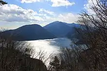 - 🌍 Mount Tenjō ropeway (天上山公園カチカチ山ロープウェイ tenjōyama kōen kachikachiyama rōpuwei) (on the east of the lake). This short cable car climbs to a viewing platform next to mount Tenjō. There you can enjoy a nice view on the lake below and on the mount Fuji, and also have a tea and eat dango (rice flour dumpling).