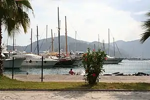 Göcek is a town in Lycia on the Mediterranean coast of Turkey. It's a small resort midway between Dalaman and Fethiye, and at the last count in 2014 its population was 6590. The main attraction is the series of small coves and islands around the bay, easily reached by boat.