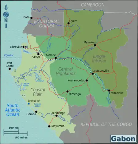 | Coastal Plain (Libreville, Gamba, Loango National Park, Mayumba, Tchibanga) flat riverplains and lagoons with dense rainforest on the Atlantic coast as well the capital city and majority of the population |