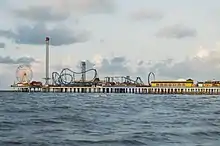 - ๐ Galveston Island Historic Pleasure Pier, 2501 Seawall Boulevard, โ +1 409-766-4950, toll-free: +1 855 789-7437. Rides, games, gift shops, ice cream and other treats available on this nostalgic pier, rebuilt after Hurricane Ike which not only trounced the pier but the famous Flagship Hotel too. Admission $10 adults/$8 children/$7 seniors; All Day Ride Pass $27 adults, $20 children (Jan 2022).