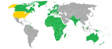 A map showing the visa requirements of The Gambia
