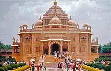 - 🌍 Akshardham Temple, 'Akshardham', Sector 20, 'J' Road, ☏ +91 79 23260001, fax: +91 79 23260336. Tu-Su 10:00-18:00. One of the biggest religious attractions in Central Gujarat, this temple has pink stones with beautiful carvings and is surrounded by beautiful gardens and awesome fountains. A laser water show, the first of its kind in the world, is a must to see. Spread over nine hectares.