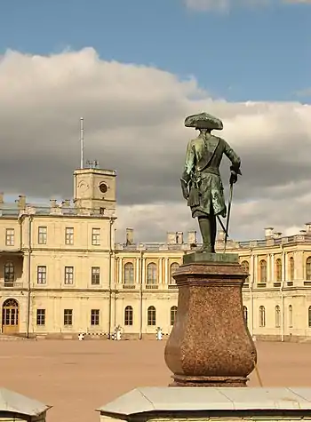 - Gatchina Palace (Большой Гатчинский дворец), 1, Krasnoarmeysky prospekt, ☏ +7 812 958 0366. 10h-18h, closes Mon. Major imperial residence, was begun in 1766–1781 by architect Antonio Rinaldi for Count Grigori Grigoryevich Orlov, favourite of Catherine II. She took such a great liking of the Gatchina Palace and park, that at Orlov's death in 1783, she bought it from his heirs and presented it to her son, the future Emperor Paul I, who went to live there for 18 years. He invested considerable resources and used his experience from his travels around Europe to make Gatchina an exemplary palace and town. During the 1790s, Paul expanded and rebuilt much of the palace, and renovated interiors in Neoclassical style. Paul I graced the park with bridges, gates, pavilions, "The Isle of Love", "The Private Garden" and "The Labyrinth" among many other additions. In 1796, after the death of his mother, Catherine the Great, Paul became Emperor Paul I of Russia, and granted Gatchina the status of Imperial City .