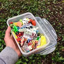 Lunchbox containers are especially common as geocaches and especially when the geocaches are hidden in nature, away from the urban areas