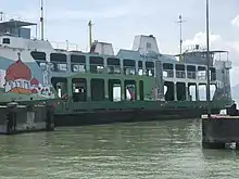 From Butterworth, the easiest way to reach the heart of George Town is by Rapid Ferry, the oldest ferry service in Malaysia. See the get in section of the Butterworth page for information on how to arrive by train. Only a short walk from the Butterworth train station is the Sultan Abdul Halim Ferry Terminal (also known as the Butterworth Ferry Terminal), with the cross-strait ferries departing every 10-20 minutes between 5:20AM– and 12:40AM daily. The fare to George Town costs RM1.20 for adults or RM0.60 for children. If you are returning to Butterworth the journey is free. Ferries arrive at 🌍 Raja Tun Uda Ferry Terminal at Weld Quay within the city centre's UNESCO World Heritage Site. Virtually all Rapid Penang buses within George Town arrive and depart from Weld Quay, with a brief stopover at KOMTAR. The car ferry service has been discontinued, and all cars are now required to use one of the two bridges; the ferry service now only carries passengers, bicycles and motorcycles.