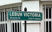 In 2008, the standard street signs throughout George Town were modified with the addition of the streets' English, Chinese, Tamil and/or Jawi (Arabic-script Malay) names. The new street signs are still in use to this day throughout the city.
