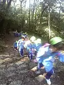 - 🌍 Mt. Kinka (金華山) (From the train station, take buses bound for Gifu Park). Mt. Kinka is a 329-meter peak next to Gifu Park, with good views of the Nagara River and the city below. On top of Mt. Kinka is Gifu Castle, a small castle museum, and a "squirrel park". Most people will take the ropeway to the top. As an alternative, you can hike through the forest, taking either the shorter and steeper hyaku-magari ('100-bend') or the longer and gentler nana-magari ('7-bend') trail. Each will take over an hour, and good hiking footwear is recommended, especially on the "100-bend" (actually 135-bend) trail. The meiso no komichi (めい想の小径) trail is easier, with some steep sections, and is a popular school outing for local kindergartens; while the uma no se (馬の背 'horseback') trail is direct and more demanding. Ropeway round trip ¥1050, ¥520 children. Museum ¥200. Squirrel park ¥200.