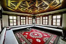 - 🌍 Guesthouse 1897, Mithat Frasheri 86 (650 m from the northern entrance of Grand Bazaar), ☏ +38344608957. Check-in: 24/7, check-out: 10:00–11:00. Guesthouse 1897 is a hostel that offers beds in dorm rooms as well as private rooms. You will experience a comfort stay in a traditional city house renovated in 2019. It is 650 m from the northern entrance of the Grand Bazaar under the foot of Cabrati hill. Guesthouse 1897 offers a spacious rooms and common areas and the opportunity to travel back in time with its mini museum that is exhibited there. Services: 24-hr check-in, free Wi-Fi, continental breakfast, traditional food, room service, free parking, laundry services, exhibition space and museum space. €10-15.