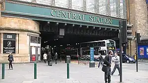City buses and those to nearby towns don't come into the station, find them out on the street. Those are the daytime buses for Balloch, Bearsden, Dumbarton, East Kilbride, Milngavie, and one of the routes to Paisley; and all the night buses. The main taxi stand is north side of the station.