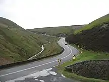 Glossop has connections in all directions to the UK road network; however, the main road (though not a primary route) is the A57. To the West this joins with the A628 Woodhead pass at Hollingworth, to become a primary route and then it is a short distance until it meets the UK motorway network via the M67 to allow quick and easy access into Greater Manchester. To the East is the A57 Snake Pass, an infamous transpennine pass to Sheffield. To the south the main road is the A624 which goes to Hayfield, Chapel-en-le-Frith and eventually Buxton via the A6; this is the main route into Derbyshire and towards the towns and cities of the East Midlands. To the North is the B6105 which links to the A628 Woodhead Pass at Crowden: the A628 is the easiest route to access the M1 from Glossop via Junction 37 at Barnsley. The A628, however, goes through Barnsley and to Pontefract in West Yorkshire.